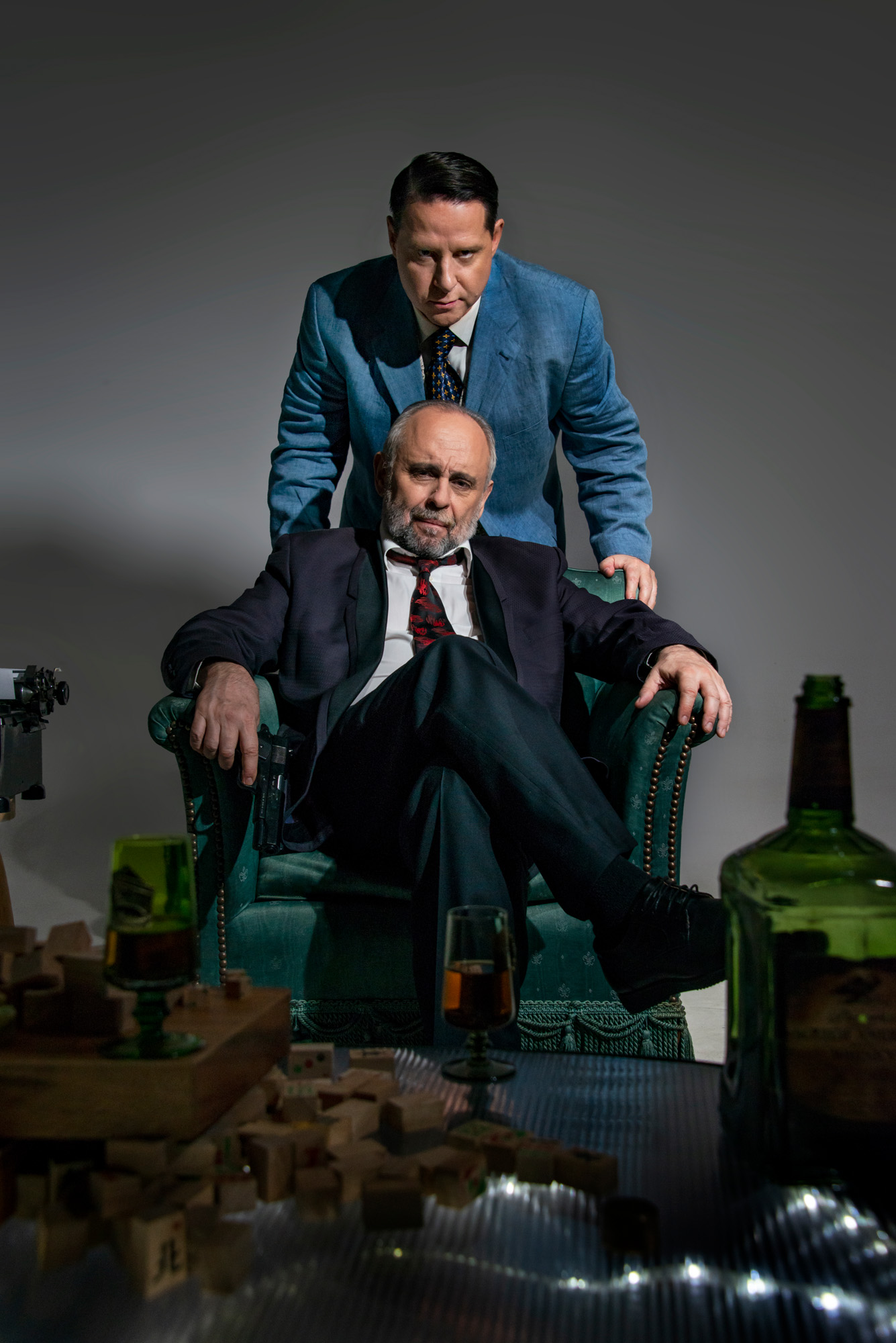 Στο "Από μηχανής" θέατρο, η παράσταση ανεβαίνει για δεύτερη χρονιά σε σκηνοθεσία Σωτήρη Χατζάκη και πρωταγωνιστούν ο ίδιος και ο Δημήτρης Μυλωνάς σε ένα σκηνικό της Έρσης Δρίνη απευθείας βγαλμένο από μυθιστόρημα της Αγκάθα Κρίστι. Τα κοστούμια του Γιάννη Μετζικώφ και οι κούκλες της Μαρίας Λιτσοπούλου - απαραίτητα στοιχεία της πλοκής - ανεβάζουν το αισθητικό αποτέλεσμα. Η σκηνοθεσία διατηρεί τα κλασικά στοιχεία της θεατρικής εμπειρίας και έχει στηριχθεί στις δυνατές ερμηνείες και την άρτια τεχνική των δύο ηθοποιών.